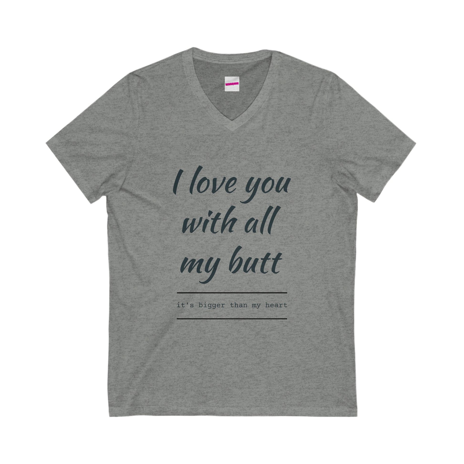Embrace your playful side with this Unisex Jersey Short Sleeve V-Neck Tee, perfect for creative souls and those who enjoy a good laugh. The shirt exudes a lighthearted vibe, complementing both casual outings and cozy nights in. Its versatile design makes it ideal for gifting on occasions like anniversaries, Valentine's Day, or simply to show love to a special someone. Suitable for friends, couples, and anyone with a sense of humor, this tee will fit seamlessly into everyday wardrobes, celebrating humor and affection with every wear.
